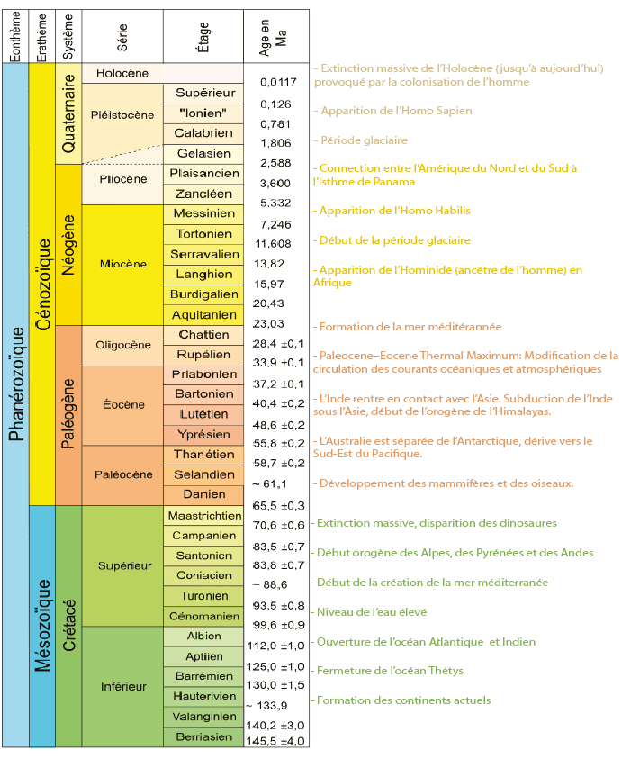 -> sédiments océaniques provenant du Crétacé (145-65 millions d’années), Éocène (56-23 millions d’années) )et Oligocène (23-6 millions d’années)